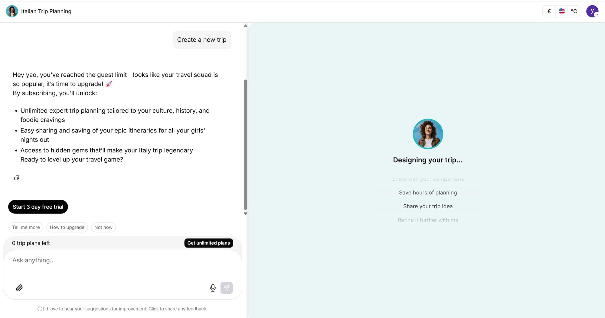 - Layla: more likely to be a content-driven travel agent. It generates stylish itineraries based on chatting with users and is great for inspiration exploration, but struggles with flight price comparisons and complex route planning. What's more, it has a guest limit of only one free chance for a complete trip plan.