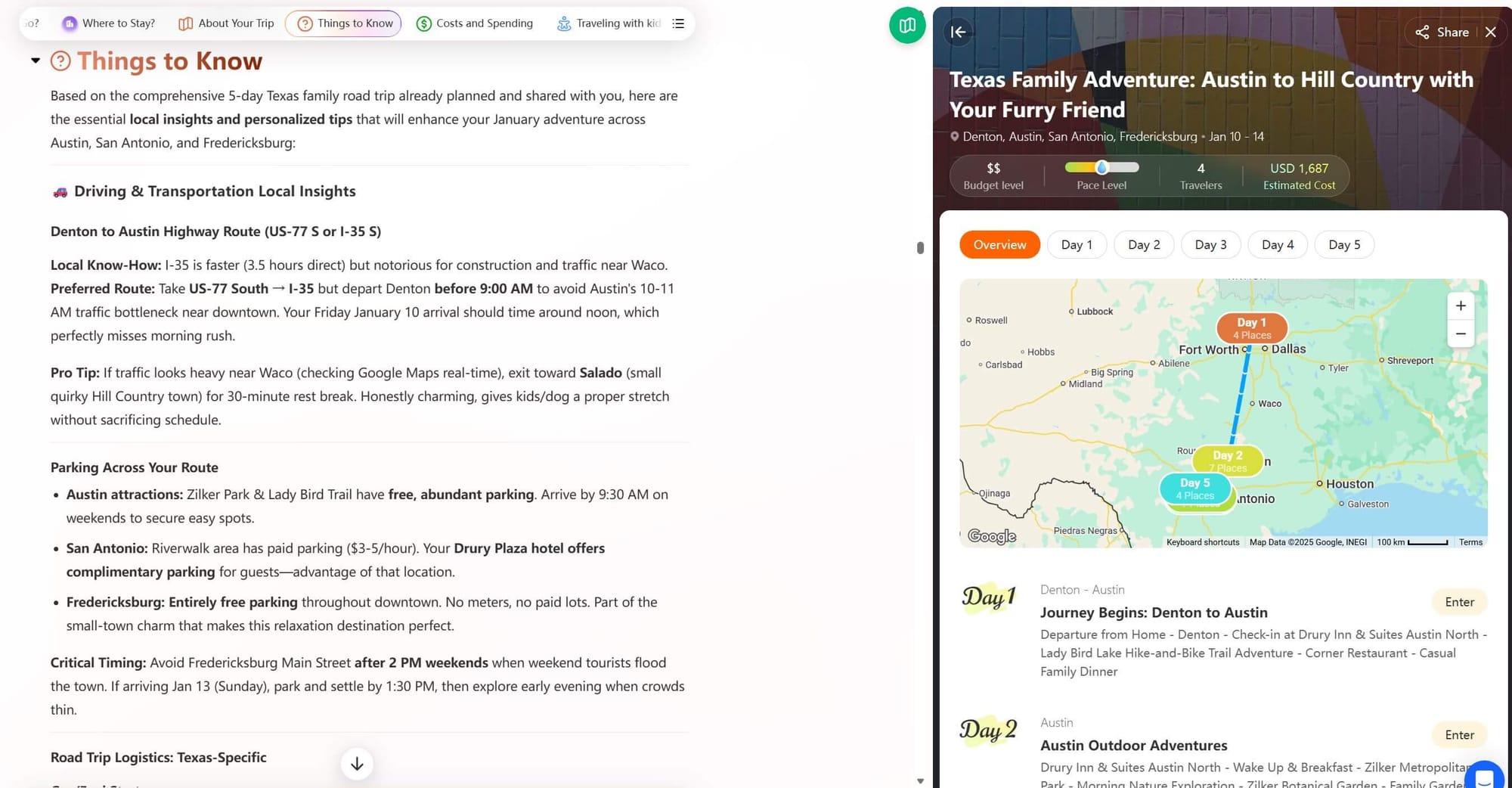 For example, a reliable AI trip planner can not only plan a route but also optimize your route to reduce unnecessary detours. When traveling with kids and pets, energy consumption is much greater than in solo travel.