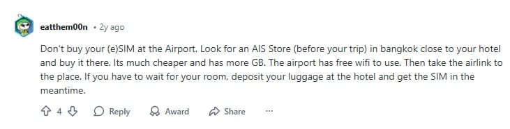Around one-third of Reddit users said airport SIM cards were overpriced or came with plans they didn’t actually need. Many said they got better and cheaper deals once they reached the city.