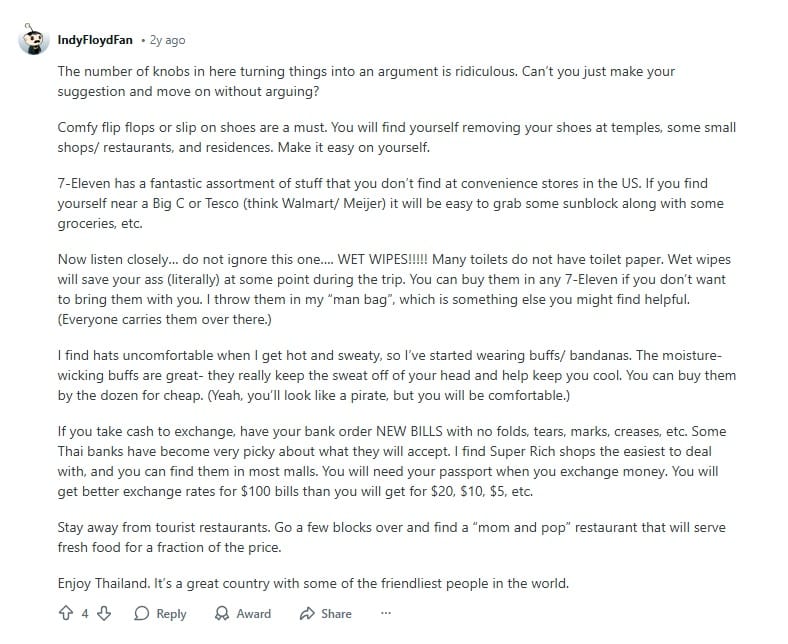 Almost half of the Reddit users mentioned seeing travelers turned away or scolded at temples for wearing shorts, crop tops, or sleeveless shirts. Some people didn’t even realize temple dress codes were strict. Others assumed they could “just wrap a scarf around” and it would be fine, but many temples don’t allow that.