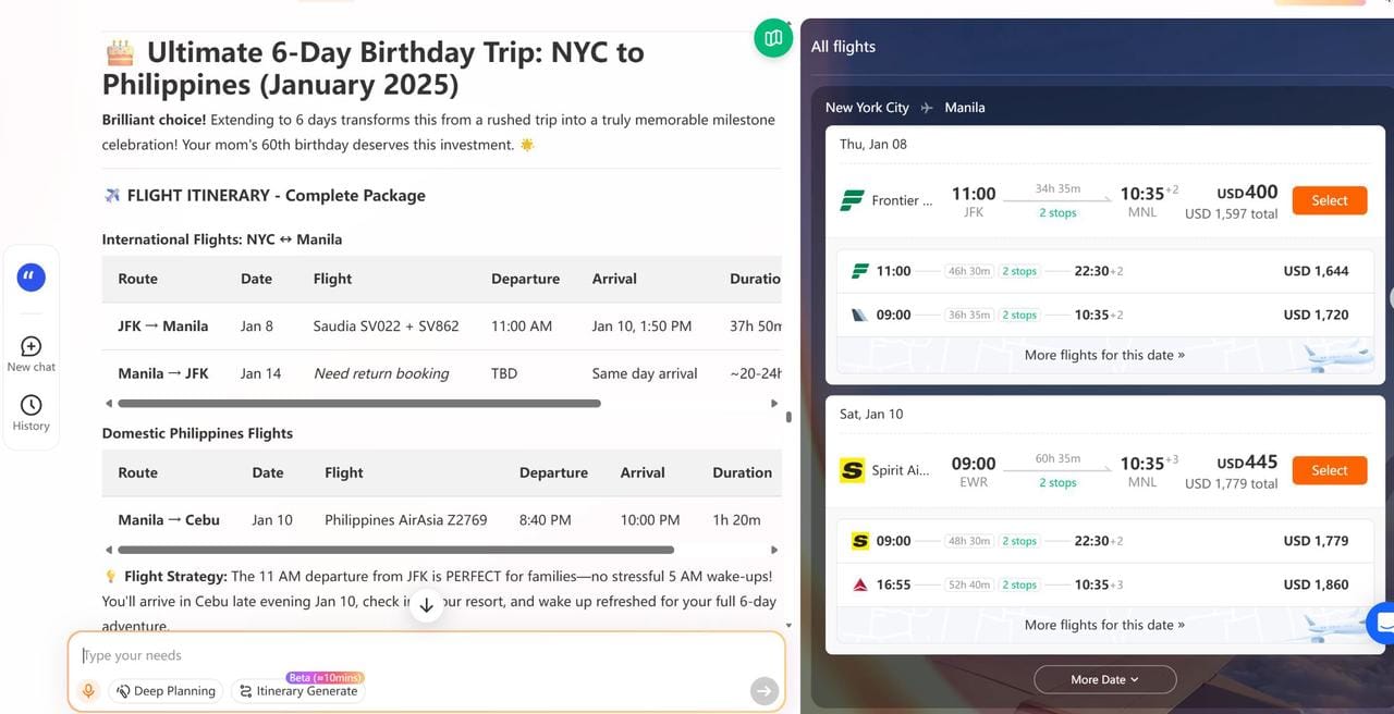 iMean AI is not just a planner and information organization tool, but also your smart assistant who truly understands your family's needs. Combined with real-time data, itinerary logic, and rhythm optimization for actual travel, it's the best AI trip planner for families.