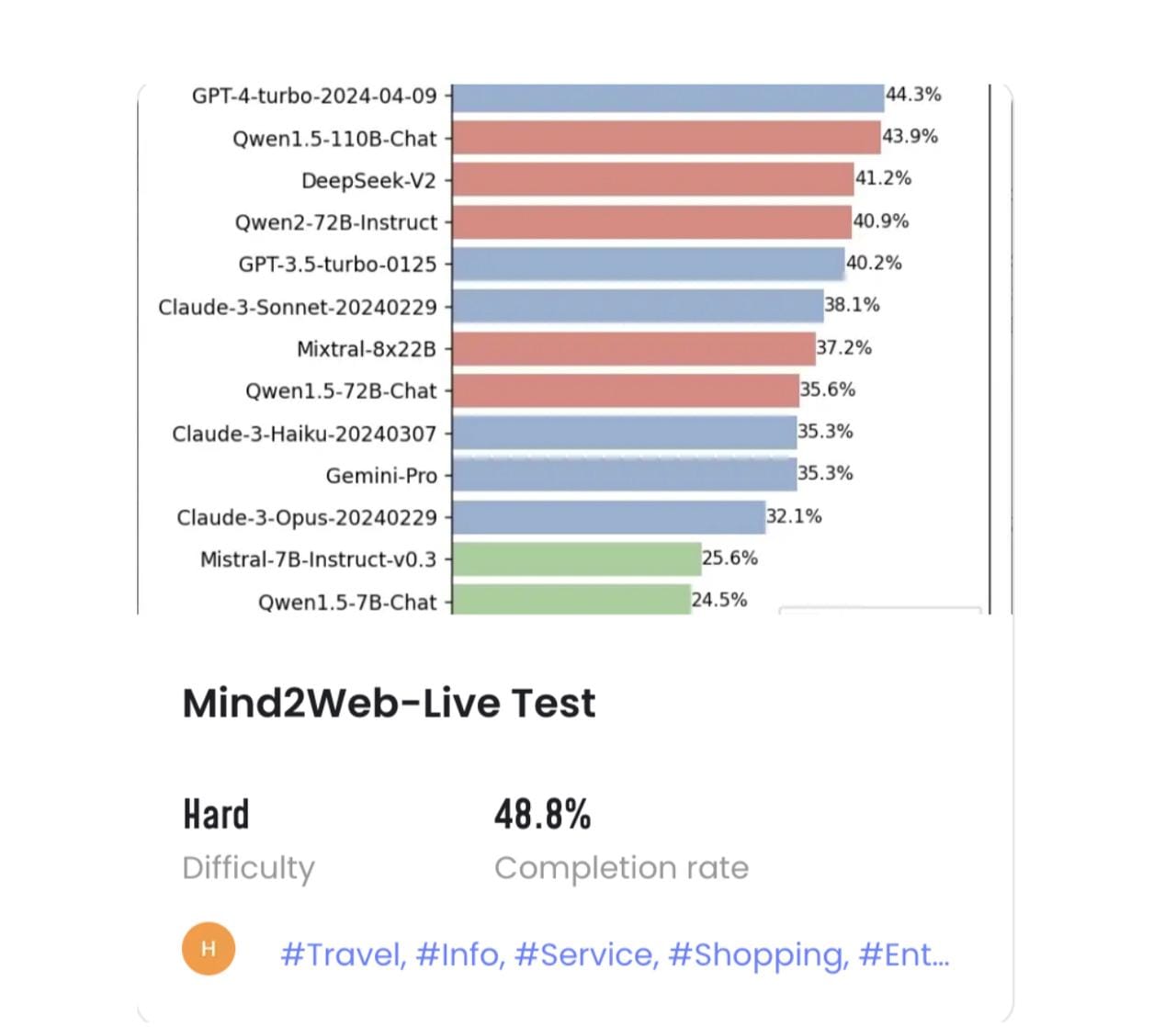 As Chief Product Officers at OpenAI and Anthropic, Kevin Weil and Mike Krieger, respectively mentioned, "Current models are not limited by intelligence level but by the evaluation methods." So, evaluation methods are crucial for WebAgent training. Model training is based on correcting deviations between output results and a benchmark. Additionally, the training of reward models also depends on many reward signal annotations relative to the benchmark. A series of good evaluation methods is the only way to scale WebAgent.