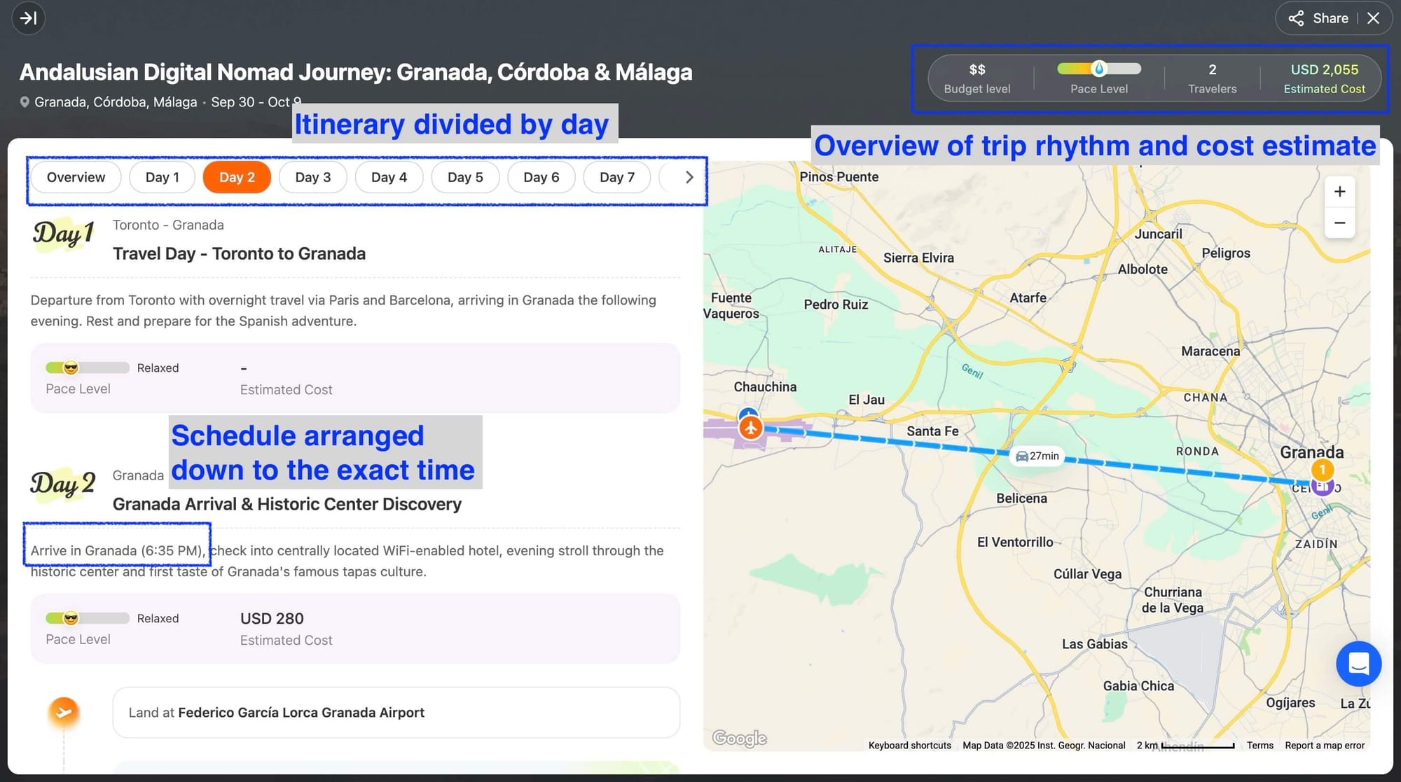In a recent use case, a remote-working couple from Toronto used iMeanAI to plan a 10-day Southern Spain “workation”: