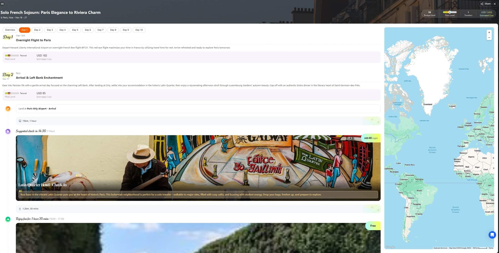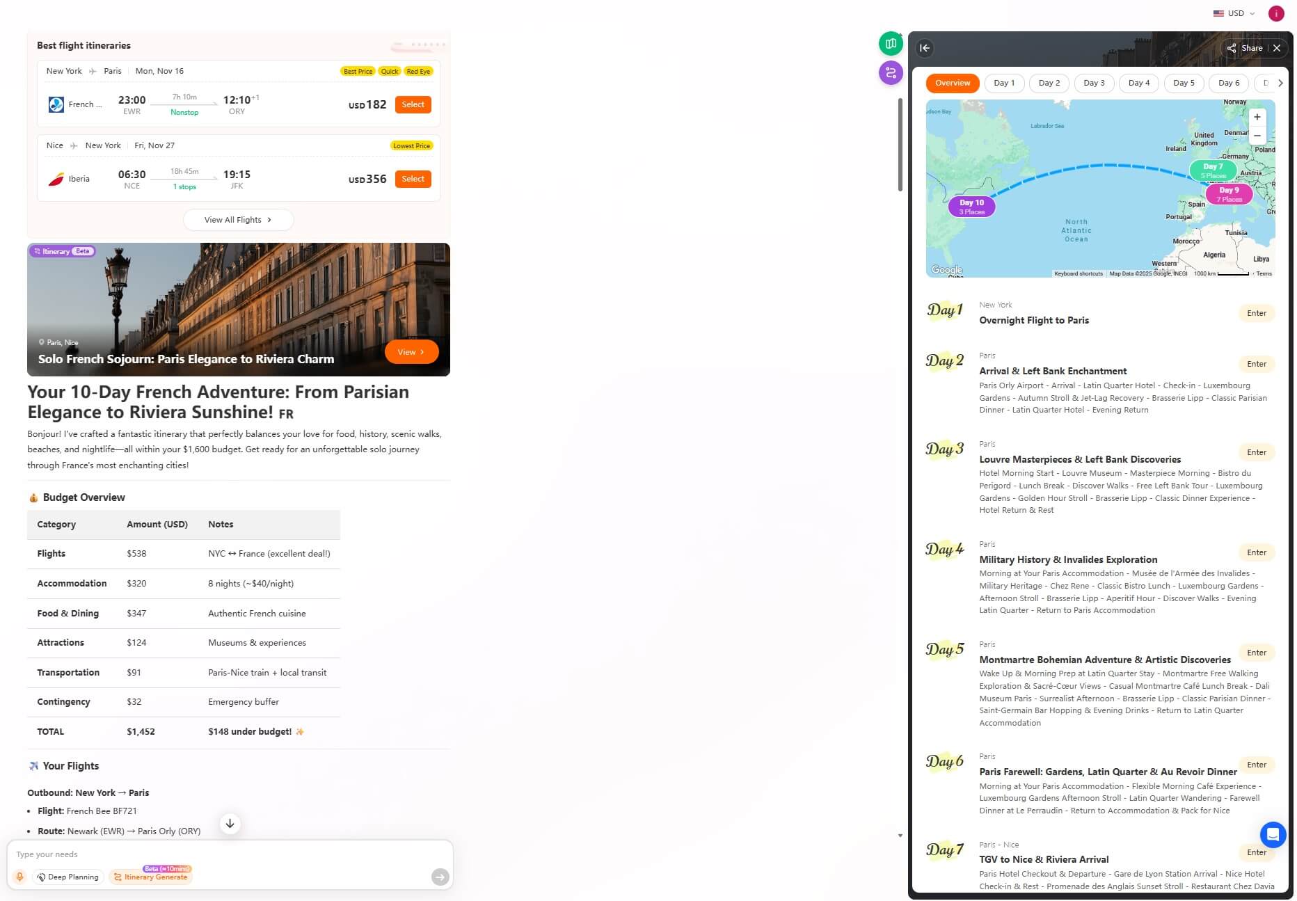As the product manager of iMean AI, I have seen our best AI trip planner help numerous people plan trips all over the world, including popular France itineraries. France has various regions. They are each unique in their own way, so people can be overwhelmed by making itineraries on their own. Different from regular trip planner websites, iMean AI can give you a full picture instead of pieces.