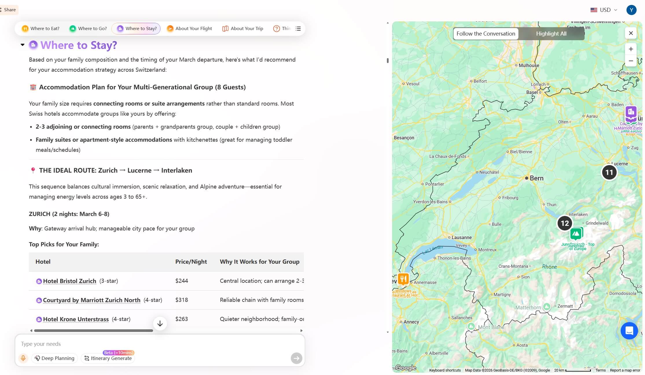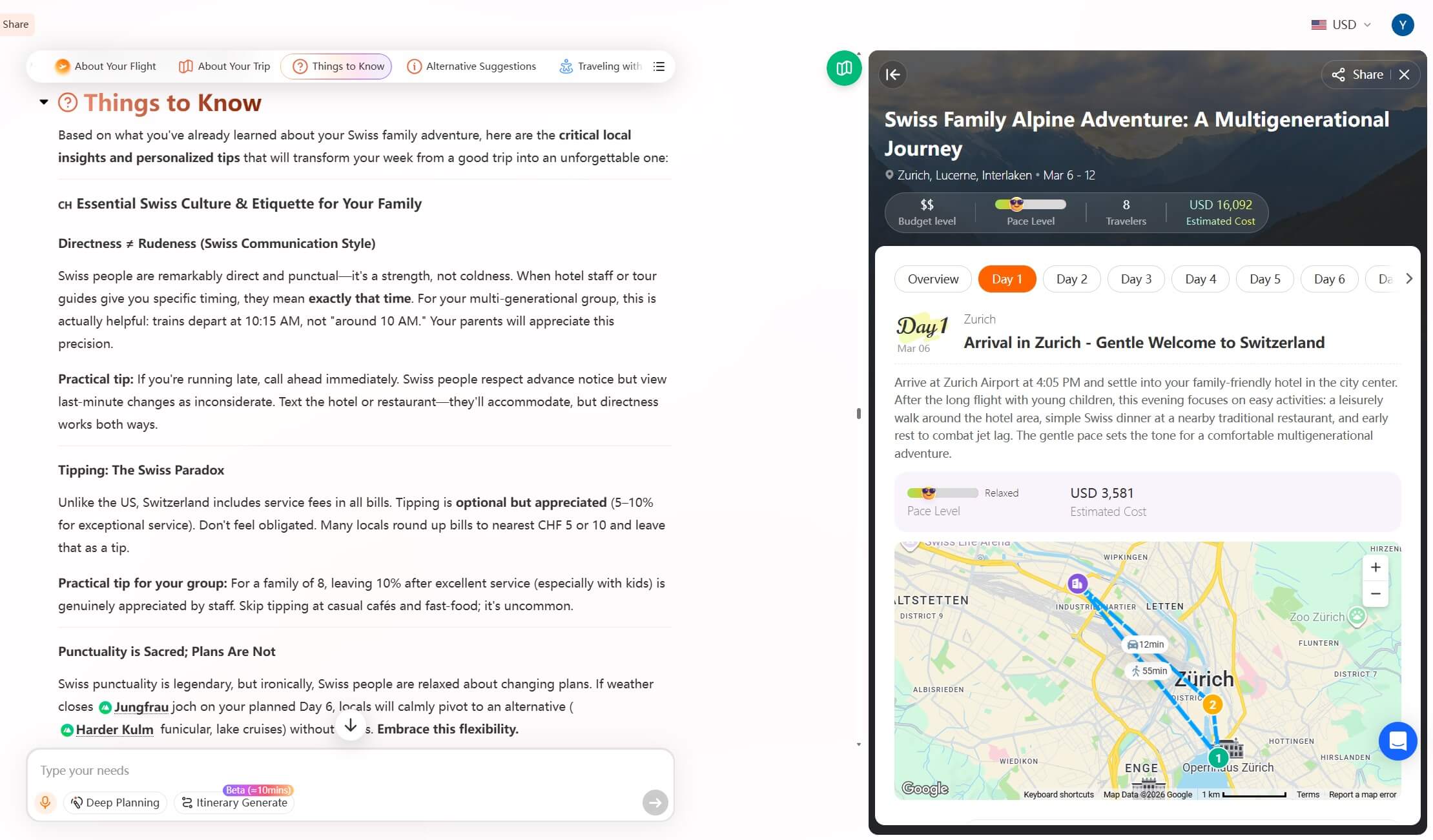 Finally, it can help you compare trade-offs more clearly. Rather than giving generic advice, iMean AI can show how adjusting a variable, like shifting dates or modifying daily pace, affects both cost and trip structure. In other words, the system acts less like a decision-maker and more like a travel analyst working behind the scenes, helping you see the implications of each choice before you commit.