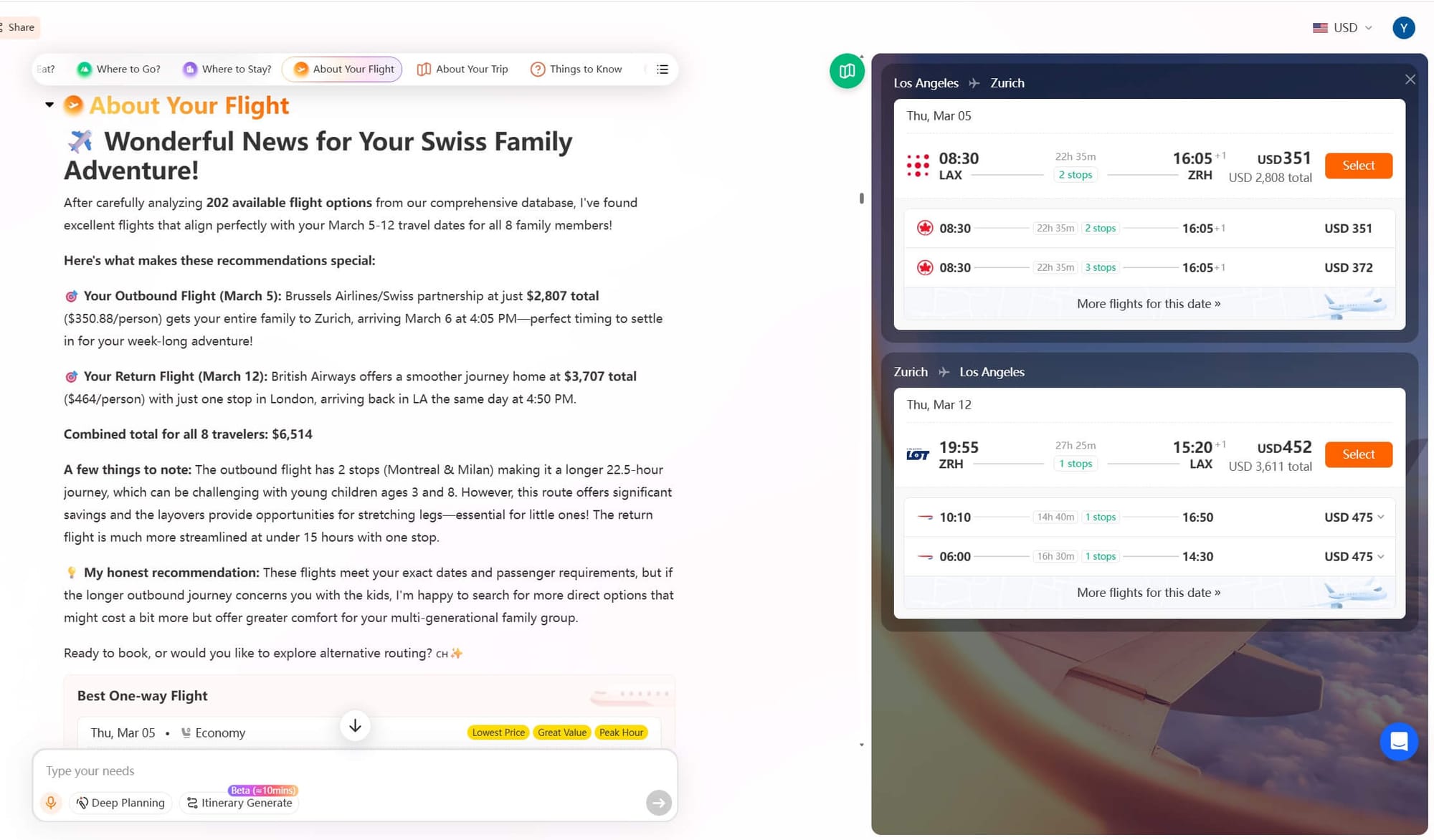 One of the biggest advantages is how quickly iMean AI can narrow down overwhelming choices. Instead of scrolling through dozens of flight combinations or jumping between hotel tabs, you can describe your budget, rough dates, preferred travel style, or even the kind of trip you think you want, and the system can immediately filter the noise into a few scenarios that actually make sense.