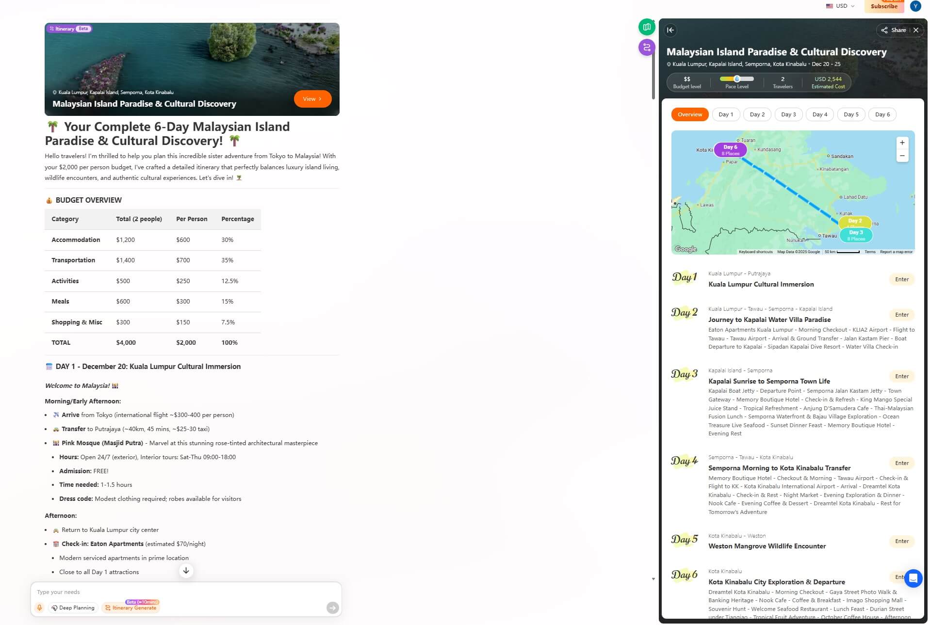 Malaysia is best experienced through a thoughtful structure rather than aggressive scheduling. A clear itinerary helps travelers avoid common pitfalls and make informed trade-offs. If you’re making a personalized, day-by-day itinerary for Malaysia, trying our free trip planner, iMean AI to generate one can be a practical starting point. It supports decision-making without replacing it.